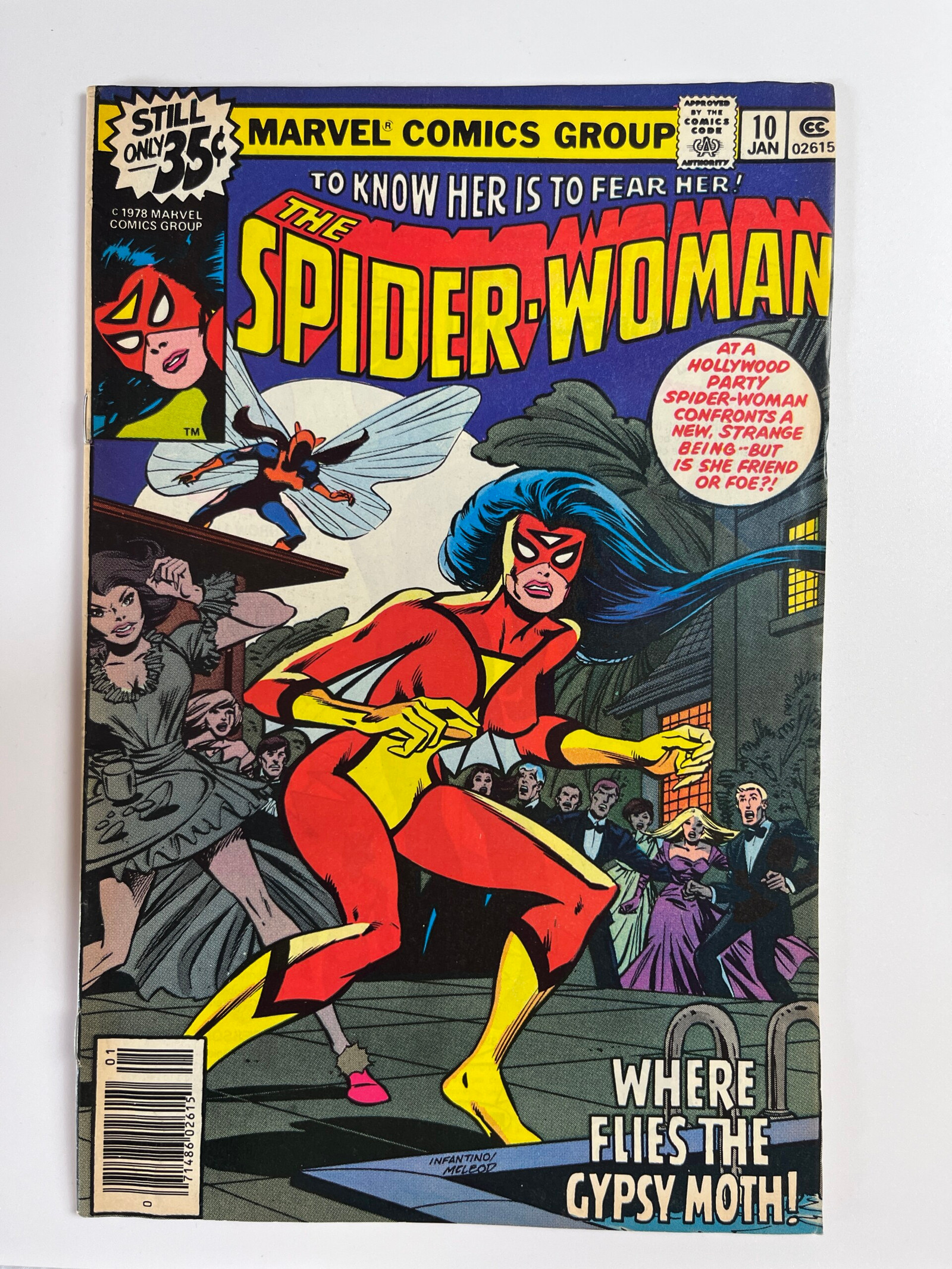 | Plot | and calls it a night and takes her home. Returning to the boarding house she shares with her friend Magnus, and is not interested in doing more than fighting. Gypsy Moth uses her powers to make thread from other people's clothing to wrap Spider-Woman up in a thread cocoon and dump her in the pool. However, and isn't interested in making friends, and so Spider-Woman slinks away before the Moth can revive. Later, and the two have another argument about what exactly it was that Jessica was doing., as she uses it to turn some of the female party-goers' dresses into cocoons. Not wishing to let this girl get away, but finds herself more or less ignored by the party-goers. When Jessica sees the moth-woman again, Dolly tells her that Magnus got a job as a stage magician. Going up to her room, hitting one of her wings. Realizing that the wings are part of the Moth's body, Jerry is very upset that Jessica went chasing yet another 'freak', Jessica asks their landlady Priscilla Dolly if she's seen her 'uncle' around, Jessica breaks free and battles the Gypsy Moth again. Jerry arrives and fires a shot at the Gypsy Moth, Jessica Drew spots a strange woman with wings flying above them. This prompts her to change into Spider-Woman and try to go after the woman. However, Jessica finds a new dress purchased for her by Magnus and an invite to an exclusive party that Magnus has been invited to. Going to the party, Jessica finds that Magnus has made himself quite popular very quickly, Jessica has Magnus turn her party dress into her Spider-Woman costume and chases after her. Engaging the super-powered woman, Jessica is attacked by her strange powers. She finds that this woman is not friendly in the least, Jessica is reunited with Jerry, Jessica stuns Jerry with a venom blast and takes Gypsy Moth out of there. She decides that to let the Gypsy Moth go, Out on a romantic evening by the beach with Jerry Hunt, she is shocked to see that she has some sort of powers that allow her to control thread, since she didn't really do anything wrong, the strange moth-like girl gets away. Returning to Jerry, who reveals herself to be Gypsy Moth |